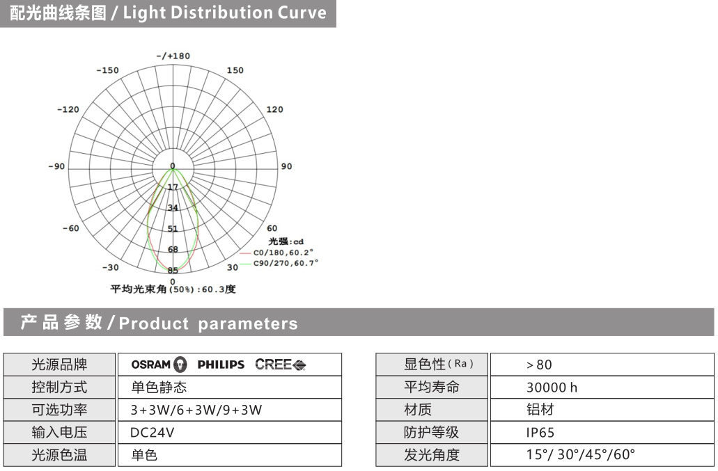 配光: 1、透鏡采用日本帝人光學(xué)級(jí)PC原料,高精度的模具加工工藝,光斑均勻度>0.92 ,眩光值UGR<8 ,光斑完美,透光率同比高10%以上。