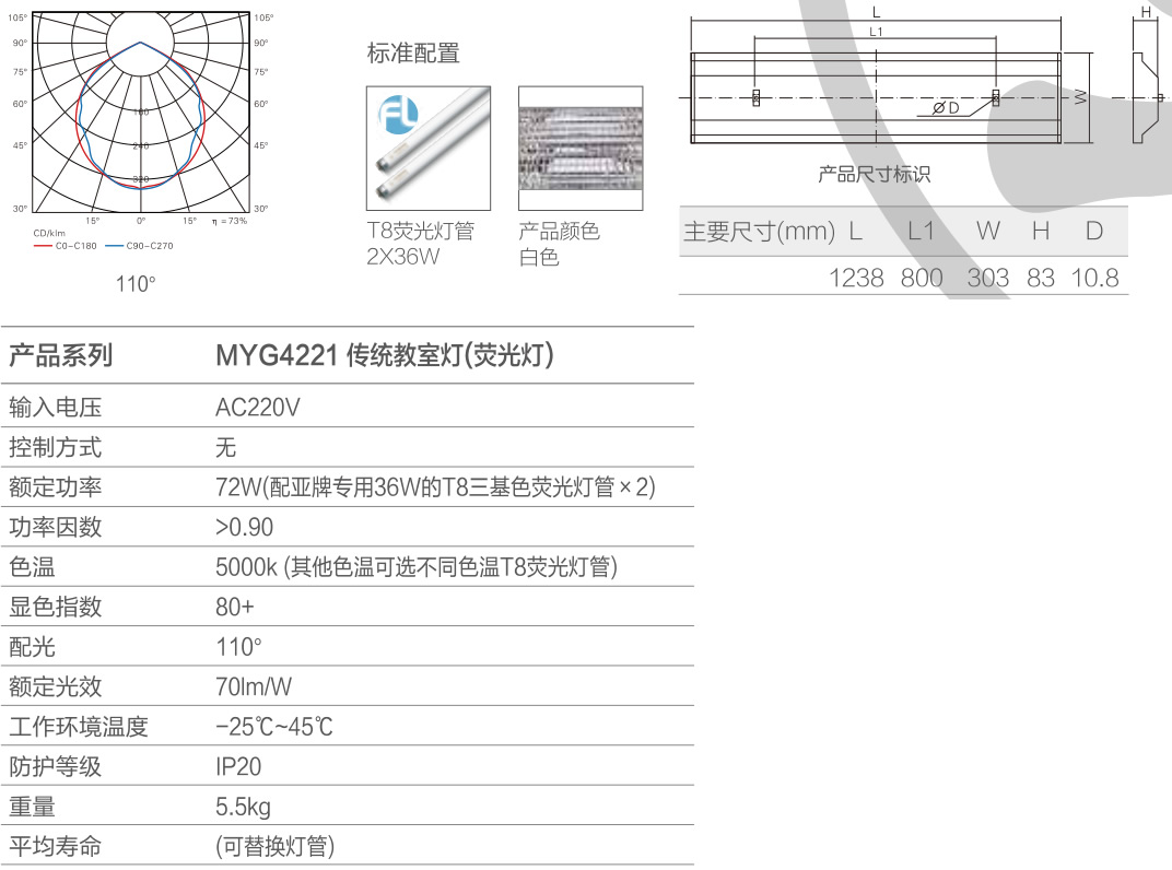 ●燈具采用電子鎮(zhèn)流器,配備T8 36W熒光燈管, 使用壽命長,光通量高,安全可靠,經(jīng)濟實惠。