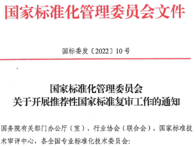 為貫徹落實(shí)《國家標(biāo)準(zhǔn)化發(fā)展綱要》中“加強(qiáng)標(biāo)準(zhǔn)復(fù)審和維護(hù)更新”和《標(biāo)準(zhǔn)化法》有關(guān)要求,有序推進(jìn)推薦性國家標(biāo)準(zhǔn)復(fù)審工作,提升標(biāo)準(zhǔn)復(fù)審工作質(zhì)量,逐步建立常態(tài)化復(fù)審機(jī)制,近日,國家標(biāo)準(zhǔn)化管理委員會(huì)發(fā)布《關(guān)于開展推薦性國家標(biāo)準(zhǔn)復(fù)審工作的通知》(國標(biāo)委發(fā)[2022]10號(hào)),通知顯示,標(biāo)準(zhǔn)復(fù)審主要內(nèi)容包括標(biāo)準(zhǔn)的適用性、規(guī)范性、時(shí)效性、協(xié)調(diào)性、實(shí)施效果等方面。