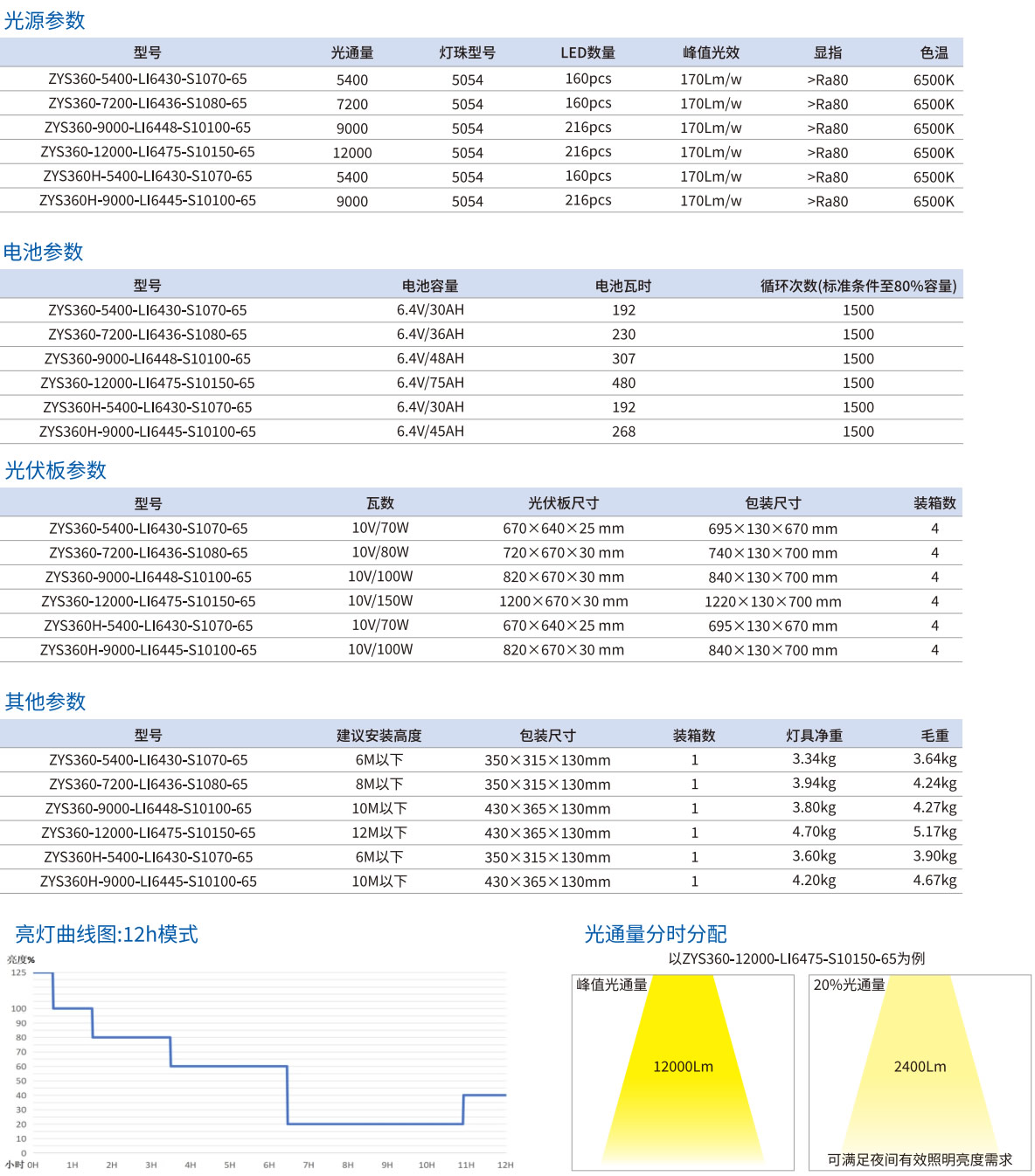 四種流明選項(xiàng)-5400、7200、9000、12000流明