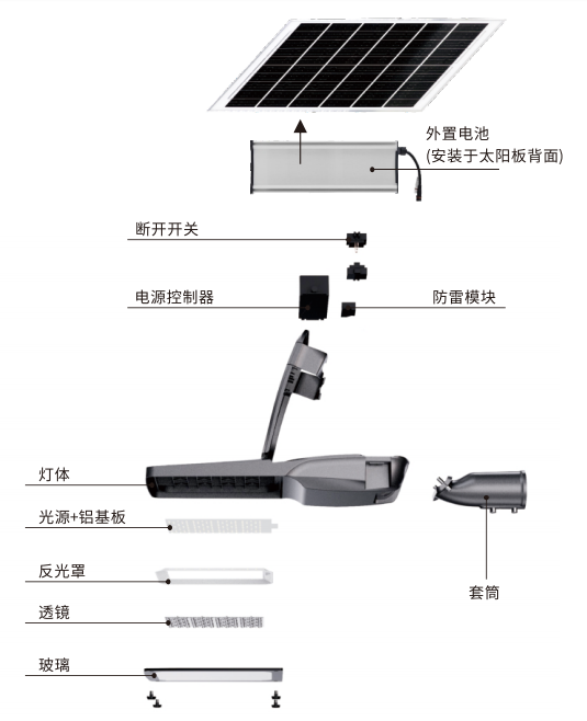 安裝過程簡便,無需電氣施工,是便捷可靠的照明解決方案。僅需將光伏板安裝于光照充足處即可。