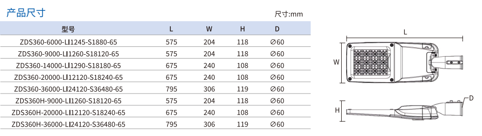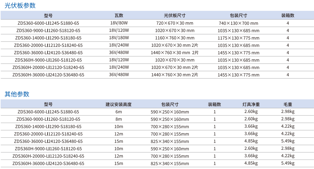 有離網和混合類型可供選擇,產品名稱中帶有H表示可以連接交流電的混合版本。安裝時只需將燈具固定在燈柱上,讓發(fā)光面精準朝向待照明的路面,同時將太陽能板對準太陽即可。五種流明選項-6000、9000、14000、20000、36000流明