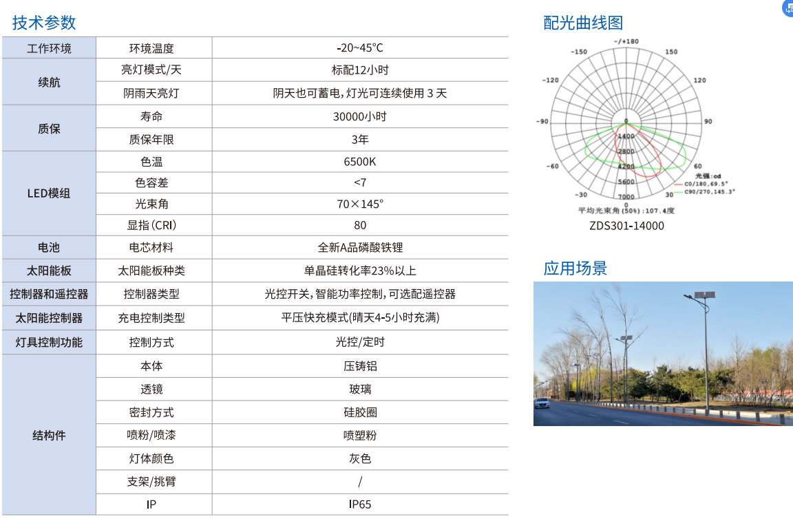 安裝時只需將燈具固定在燈柱上,讓發(fā)光面精準(zhǔn)朝向待照明的路面,同時將太陽能板對準(zhǔn)太陽即可。五種流明選項-1500、3000、5600、8600、14000流明